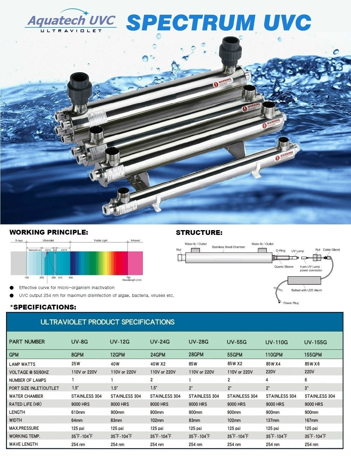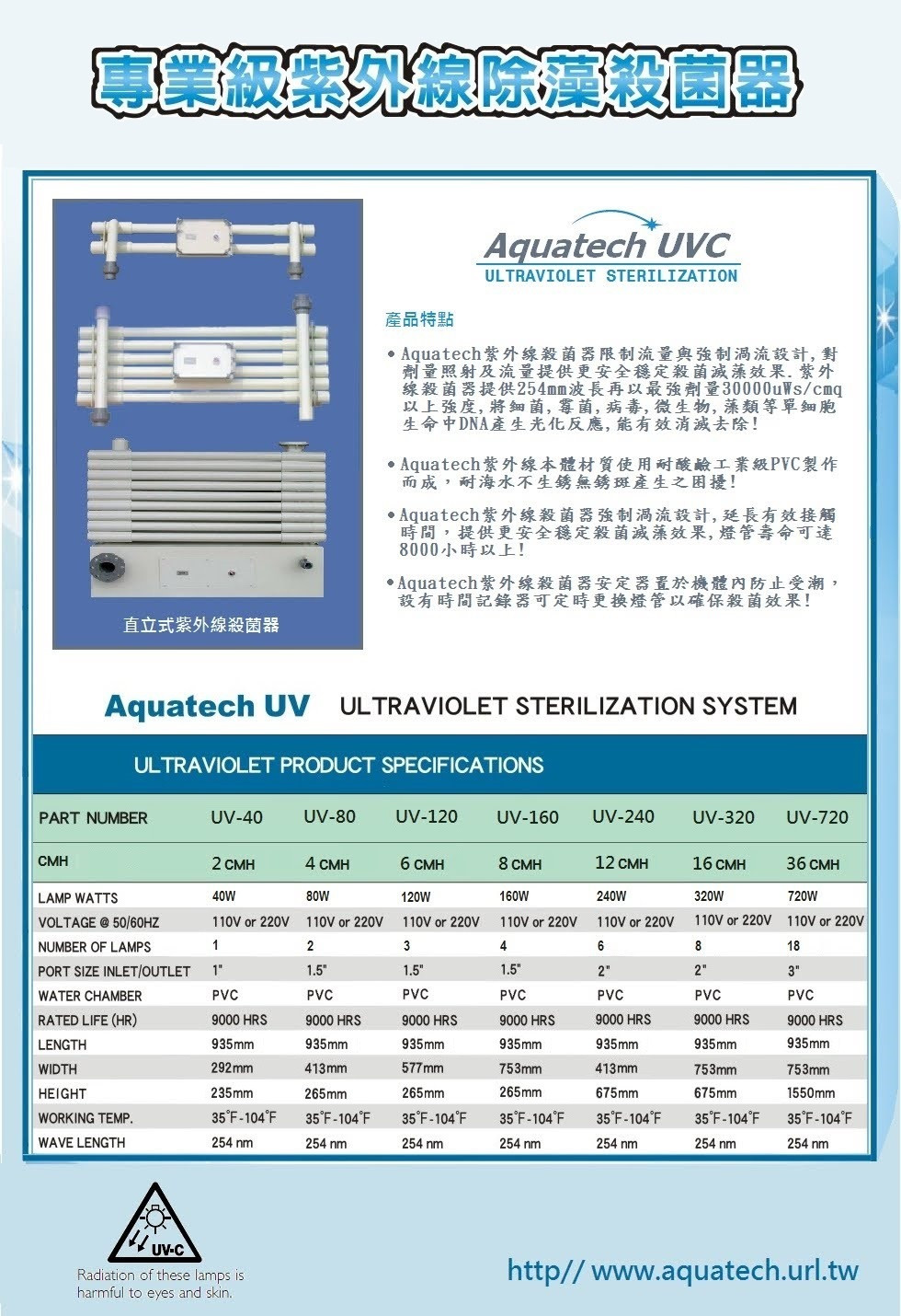 安全穩定殺菌滅藻效果.紫外線殺菌器提供254mm波長再以最強劑量提供30000uWs/cmq以上強度,
